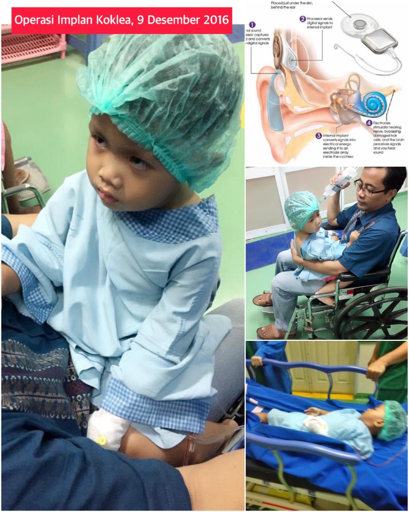 Setiap 9 Desember, selalu melo ingat momen di RSCM. Hari ini, 5 tahun yang lalu Aziza masuk ruang bedah terpadu untuk operasi kepala dan telinga sejak jam 6 pagi. Dia menjalani implan koklea atau penanaman elektroda dari bahan titanium hingga ke rumah siputnya untuk menggantikan fungsi sel-sel rambut koklea yang rusak. Alat ini berfungsi menghantarkan impuls suara langsung ke syaraf pendengaran yang kemudian meneruskan ke otak.