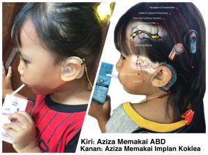 Hehehe… Di Jakarta aja banyaaaaaaaaaak banget orang yang seumur hidupnya nggak pernah melihat anak pakai implan koklea pak. Apalagi di daerah sana. Hehe.. Jadi saya nyaris tiap hari menjelaskan apa itu implan koklea, kenapa Aziza memakainya, dll dll.. Udah kayak kaset diputer terus-terusan ini xixixixi.. Ada sebagian orang yang kesel dan cemberut ditanyain. Kalau saya memilih senyumc dan terbuka menjelaskan. Itung-itung ngasih ilmu baru, nge share pencegahan dll.. Smg jadi tabungan kebaikan juga ketimbang marah-marah sensi tralala hehe